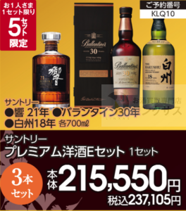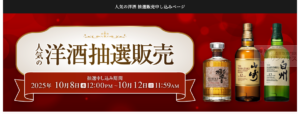 百貨店の場合は、各店舗がそれぞれのタイミングで抽選販売を行っています。特にお歳暮・お中元のシーズンや、年末年始などはレアウイスキーの抽選販売が多くなりやすい傾向です。なお店舗によっては、「白州12年」「白州18年」などレアな熟成ボトルが抽選対象になる場合もあります。こちらも会員限定の抽選であることが多いので、カードやアプリに前もって登録しておくと良いでしょう。